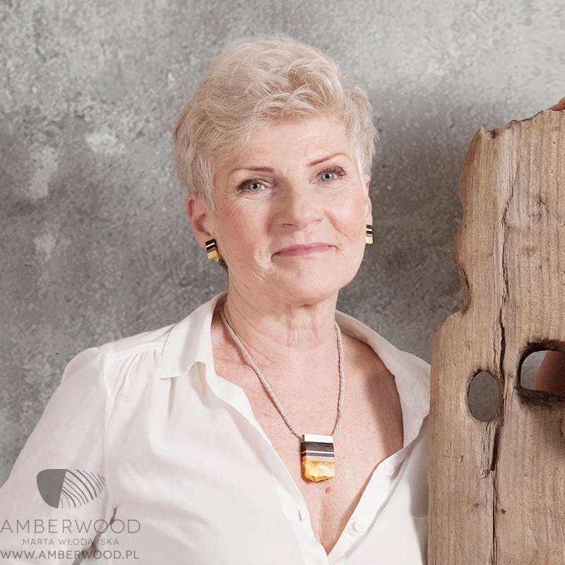 W pojedynczych ręcznie wykonanych egzemplarzach biżuterii łączę naturalny bursztyn bałtycki z rożnymi gatunkami drewna srebrem, lnem, skórą, piórami. Chce pokazać wewnętrzne piękno tych organicznych materiałów. Jestem zafascynowana pojemną pamięcią żywicy- zastygłą historią życia. Amberwood – źródło bursztynowej żywicy, która ma ponad 40 mln lat, jest bazą moich wszystkich kolekcji biżuterii.